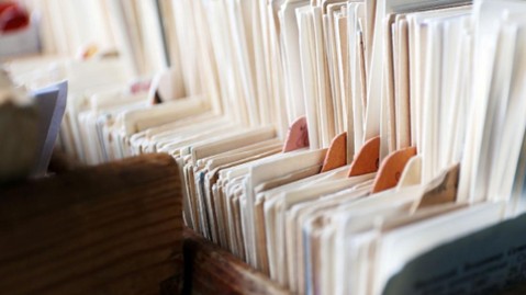 Stock photo of papers in file folders, representing a personally curated library of scholarly articles